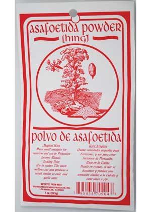 Possessing a potent aroma, Asafoetida powder is a powerful aid in rituals of exorcism and protection as well as cooking. Smelling particularly potent and unpleasant when raw, Asafoetida improves notably once it is burned or cooked, then producing a fragrance similar to onions or garlic, and is said to have a flavor similar to leeks.